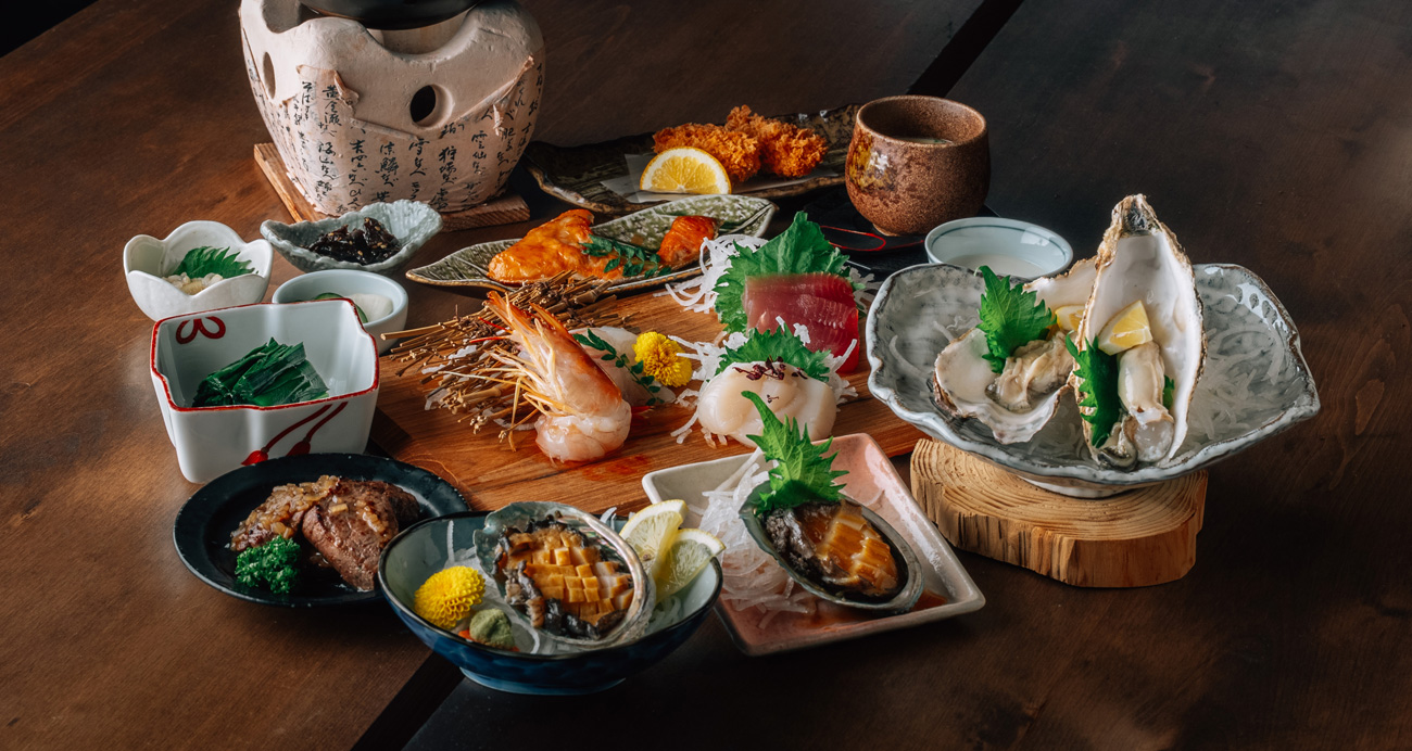 地元・北海道知内町の特産品を使い、素材のおいしさを最大限に生かした料理の提供に力を入れた食の宿でもあります。同じ素材であっても季節によって調理法を変え、旬を活かした一番おいしい食べ方にこだわり、春は山菜などの山の幸、夏は海の幸の魚介類、秋はサケや栗、冬は牡蠣などをメインにした料理が食卓を彩ります。